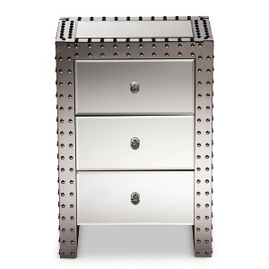 This is a really snazzy nightstand. The mirrored finish and nailhead trim make it really stand out in the sea of composite wood and laminate nightstands on the market now.
