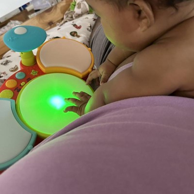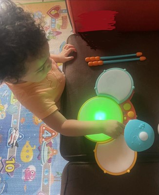 Such a great and cute drum set! Love that it lights up and that you can store the drum stick underneath it. Hours of fun for everyone even the adults.
