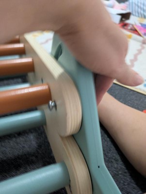 [This review was collected as part of a promotion.] This wooden triangle climber is really cool! My son is a 19 mo old and loves it! Perfect for learning coordination skills at this age. The grooves that each reversible part of the climber sits on the ladder well and doesn’t move around, so I feel that it’s pretty safe. Assembly took about 45 mins. Tools are provided (just allen wrenches) so it was pretty simple. Neutral colors that go with any decor around the house. Great gift for a toddler!