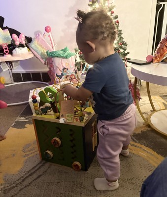 - Smooth & Sturdy: This durable activity cube is made with solid wood and features rounded corners.