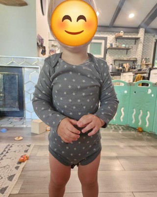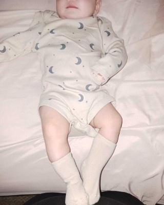 Baby 4pk Long Sleeve Moons Bodysuit - Cloud Island™ Gray Newborn: Cotton, Crotch Snap, Lap Shoulder