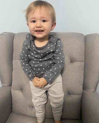 Your baby will be ready to shine wearing the pieces from the 4-Pack Long-Sleeve Moons Bodysuits from Cloud Island™. This pack of four long-sleeve bodysuits includes assorted styles in a mix of solid-color, star and moon prints for sweet dressing options. Tailored from 100% cotton fabric in a single-layered construction, the pieces help keep your darling comfortable from nap time to play time Plus, the lap shoulders and crotch snaps allow easy dressing and changing.