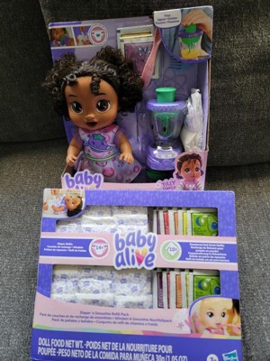 - TIME FOR A DIAPER CHANGE: After drinking and eating, she'll wet her diaper! Includes 2 Baby Alive diapers
