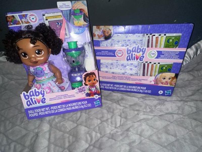- BERRY-THEMED POWDERED DOLL FOOD: Comes with 2 powdered Baby Alive food packets that kids can combine with water to imagine making a yummy smoothie for Tilly