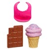 Includes bib, ice cream cone accessory, and chocolate bar accessory.