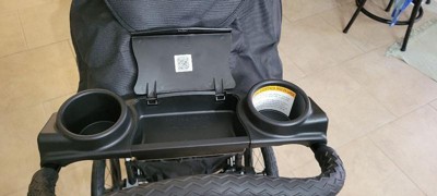 - Child's tray with two cup holders also accept an infant car seat to create a Travel System.