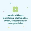 - Made without parabens, phthalates, dyes or fragrances.