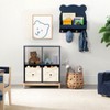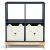 This wildly stylish babyGap Brannan Bear Bookcase with Bins is an unforgettable addition to any nursery, play space or kid's bedroom. You’ll love the way this bookcase simplifies organization--use the open cubbies for books or toys and use the two included fabric bins to keep things hidden. The two fabric bins feature a printed bear face and adorable three-dimensional ears for added character. The low height of this bookcase makes everything easily accessible for your little one while the include wall anchor ensures your child’s safety. The babyGap Brannan Bear Bookcase with Bins coordinates with other items in the babyGap by Delta Children collection in the same finish.