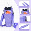 This Stanley Quencher 40 oz Cup Sleeve comes with adimond removable and adjustable shoulder strap, the shoulder strap can be easily adjusted between 28-53inch to fit a wide range of body shapes. It can hand carrying and crossbody.This water bottle holder designed with two pocket designs that provide plenty of room for all your personal belongings like phones, cash, cards,keys..