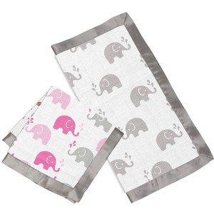 Bacati - Elephants Pink/Gray Muslin 2 pc Security Blankets