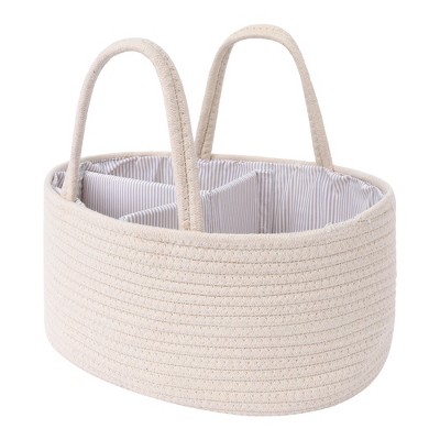 - Large enough for all baby necessities. Caddy measures 12.5" long by 8.5" wide by 6.25" high and has flexible handles that each measure 1" wide and 15" long from end to end with a soft body and a removable T-separator on the inside.