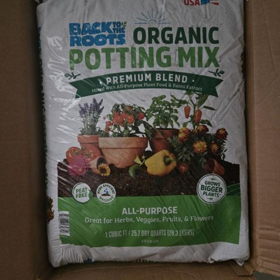 Back to the Roots 25.7qt Organic Potting Mix Premium Blend All Purpose: Soil for Flowers & House Plants, Peat-Free