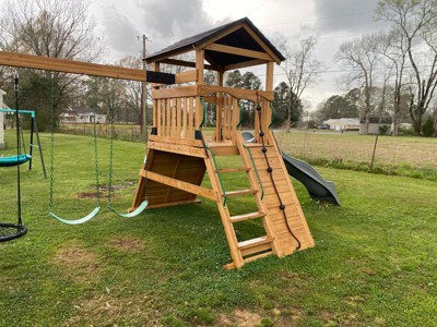 Our 3 yr old had a liver transplant as a baby, and we got this playset as part of his Wish! It brings us such joy to see him being adventurous and having fun like a regular kid - all while being safe. Great materials - came out of the box smelling like cedar. Easy assembly and delivery. Will be a great outlet for our boys’ energy for years!