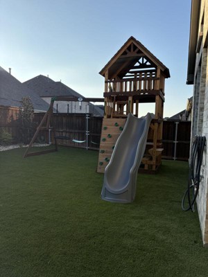 This playset has become a beloved addition to many backyards, providing endless fun for children of various ages. Guests appreciate its sturdy construction and thoughtful design, which includes features like a rock wall, slide, and multiple levels for imaginative play. While assembly can be time-consuming, the detailed instructions help make the process manageable. Overall, this playset is a fantastic investment for families looking to create lasting memories outdoors.
