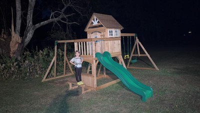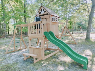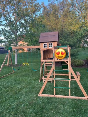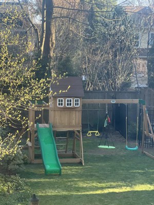 The swing set offers a delightful play experience for children, featuring a variety of activities such as swings, monkey bars, and a playhouse. Many guests appreciate the sturdy construction and detailed assembly instructions, making it a fun family project. While some guests noted issues with wood quality and assembly challenges, the overall enjoyment and satisfaction from children using the set shine through, making it a worthwhile investment for outdoor fun.