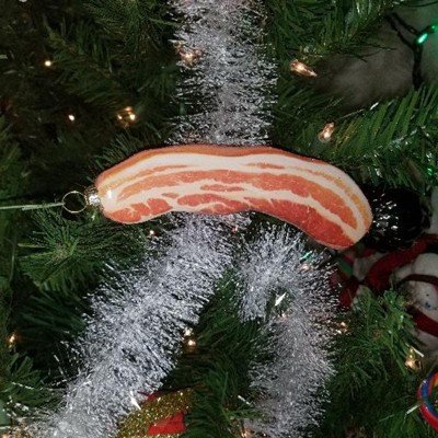 A: The ornament represents a food and drink theme, specifically designed as a bacon piece.