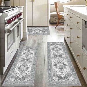 This 3-piece boho kitchen runner rug set brings a warm, vintage touch to your space with classic patterns in a modern low-pile design. Measuring 20" x 32", 20" x 47", and 20" x 59", each rug layers beautifully in your kitchen, hallway, or laundry room—adding style without blocking doors.