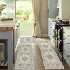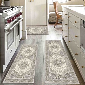 This 3-piece boho kitchen runner rug set brings a warm, vintage touch to your space with classic patterns in a modern low-pile design. Measuring 20" x 32", 20" x 47", and 20" x 59", each rug layers beautifully in your kitchen, hallway, or laundry room—adding style without blocking doors.