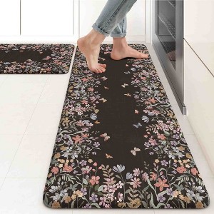 - Finished in a boho butterfly and floral design, these mats add a bright, cheerful touch to your kitchen, laundry room, office, or any high-traffic area where you need comfort underfoot.