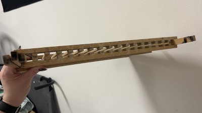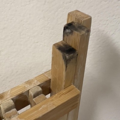 A: The drying rack has a varnished bamboo finish for a rustic touch.