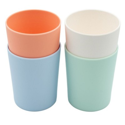 WeeSprout Bamboo Toddler Cups, Organic & Non-Plastic Cup for Big Kids or Baby, 10 oz - Blue, Yellow, Orange & Red, Set of 4
