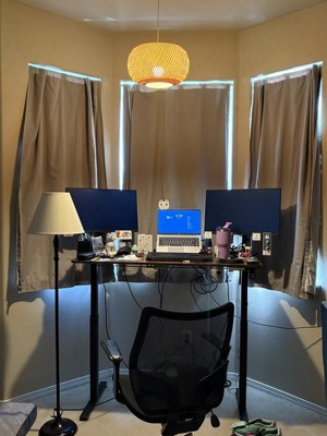 Okay so I thought meh it's okay but I'm not sure it's my style. I needed a bit more extra light in my "office" area. Well sheesh I had NO idea I desperately needed light. And I do mean DESPERATELY. I had a lamp right next to my desk and EVERY morning my laptop Face ID didn't work. I thought it was my face. NO. I didn't have enough LIGHT!! This cute pendant light is SO lightweight, comes with two ceiling hooks, wall hooks to keep the cord neat to the wall or wrapped whatever you need. Well my man hung this up for me on Monday, it's now Thursday and my Face ID works EVERY TIME. I took pictures to show how AWFUL it is without that new lamp!! And it's so cute to boot!
