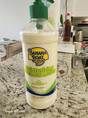 [This review was collected as part of a promotion.] This banana boat us. Banana boat moisturizing, allow after sun pump lotion. It's very good. It makes my skin feel so smooth. After you use, there's no irritation. And easy to blend so day snow residual left behind. I like it so much and we'll use it more frequent during summer. So dead, I won't get burned at the exposing. In the sun, this brand I have been news in the sunscreen thought a long time. Hi, I love it so much.Then we'll buy it's again, thank you influenced and banana bolt. U s for the opportunity to try this product highly recommend