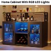 Bar Cabinet with Power Outlets, Led Lights and Glass Holder, Storage Buffet Cabinet