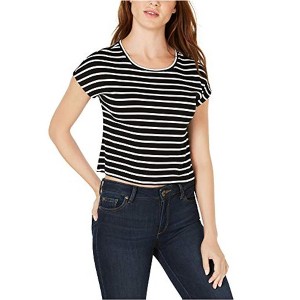 bar III Womens Cropped Basic T-Shirt, blkwhtstripe, X-Large