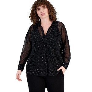 bar III Womens Dewdrop Button Down Blouse, black, 1X