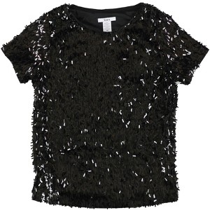 bar III Womens Sequined Mesh Pullover Blouse, deepblack, Medium