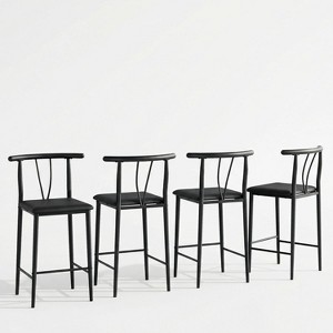 Bar Stools Set of 4, 25 Inch Counter Height Faux Leather Stools with Back, Black Metal Legs