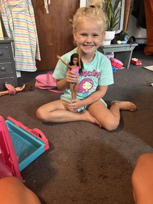 [This review was collected as part of a promotion.] Barbie is ready for the pool or beach! Her pink to blue ombré swim suit and long chocolate locks are complimented by her sun kissed skin. She’s fine in her mini pool or a little wet from the bath. She’s a fun addition to our Barbie crew.