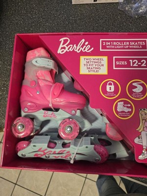 BARBIE 2in1 Kids Roller Skates, Transform from Quads to Inlines Skates, Durable Hardshell Boot, LED Wheels ABEC-7 Carbon Steel Bearings