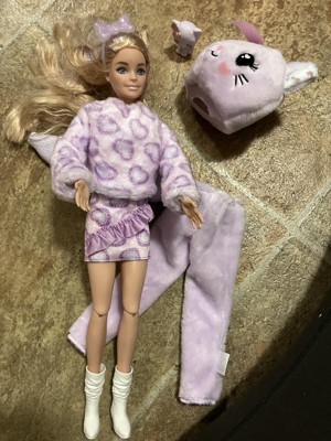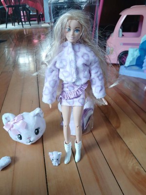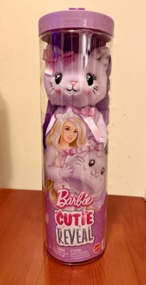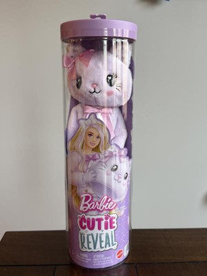 [This review was collected as part of a promotion.] We got this Cutie Barbie Reveal doll for my 6-year-old. She really loved the doll as a kitty in the costume, the "surprises" that came with it (boots, skirt, pet, comb, and headband), and just playing with her as a regular doll after she got her kitty costume off. These are a little different from the previous version, where you couldn't see exactly what your costumed doll looked like until the box was open. She was so excited to open her surprise envelopes and reveal her Barbie's face under the kitty head. Barbie has a pretty face and hair that will stand up to combing. An instant favorite.