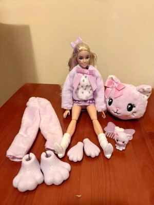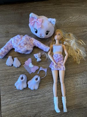 [This review was collected as part of a promotion.] My 7-year-old daughter could not contain her excitement when she saw this cute reveal Barbie! The outfit was easy to remove so she could see the Barbie underneath. My granddaughter loves how soft the outfit is as well. I am happy that my granddaughter can easily change the clothes including the cat hands and feet. The outfit is very well made and absolutely adorable.