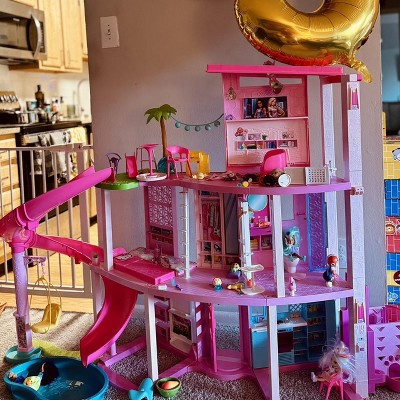 - Right from the start, kids can spend hours exploring ten different play areas: a kitchen, living room, dining room, bedroom, bathroom, working elevator, closet, bonus room, balcony, pool and the biggest slide yet