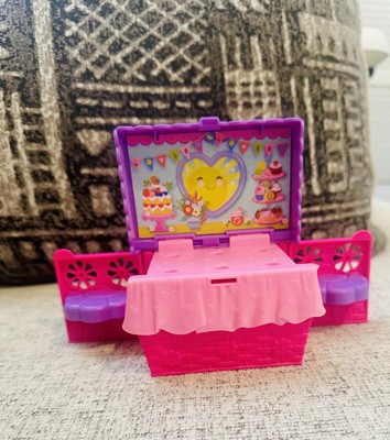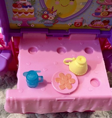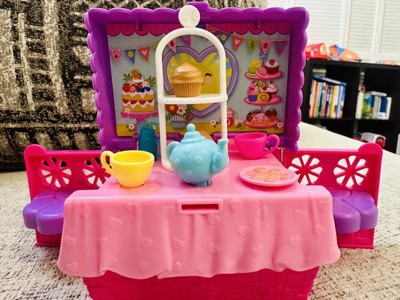 [This review was collected as part of a promotion.] This toy is great to play "tea party" anywhere. You can take it with you. The only downside of it, is the muffin display and doll won't fit into the container. Just the small parts. Overall its a great toy and my 3 year old daughter loves it.