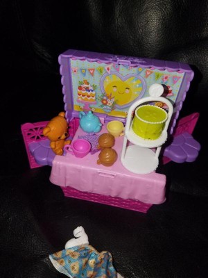 [This review was collected as part of a promotion.] Compact and adorable, this play set is near perfect. All but one accessory fits inside. The tea cake tray/display is too big to nest inside. Consequently, it is most prone to separation or worse - loss. My daughter adored the set and liked the transformative aspect from set to basket. Her only criticism was, “I wish it had more than one teddy bear.”