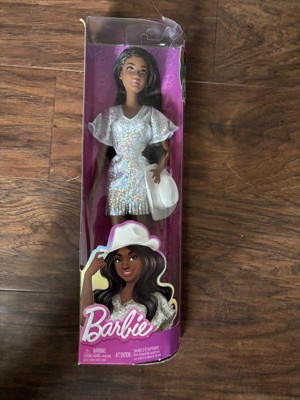 Barbie Fashionistas Doll #239 in Sparkly Silver Dress with Cowboy Hat and Boots, Black Hair