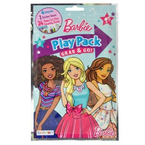 Meet the Barbie Grab and Go Play Pack - a cute and creative mini activity kit perfect for on-the-go fun. Kids can enjoy coloring pages, stickers, and a mini crayon set featuring Barbie and friends.