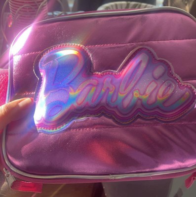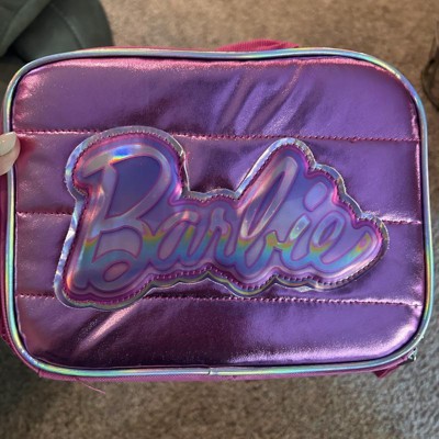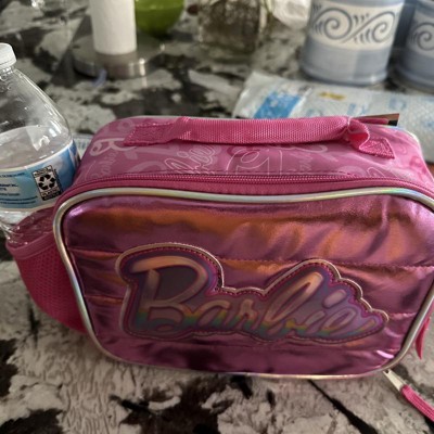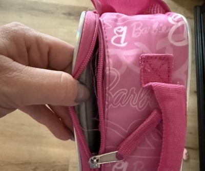 [This review was collected as part of a promotion.] My daughter loves this stylish lunch bag. I love the look of the Barbie logo and the metallic front design. The lunch bag is the size of a typical lunch bag. It has a side pocket and an inner pocket. The side pocket is kind of useless. It’s big enough to hold a juice box, but anything you put in that pocket ends up falling out. We use different lunch box containers and they all seem to fit. The price is fair for a lunch bag. I thought it would cost more since it’s a character bag. The quality is ok. I have a hard time with the zipper sometimes. I received an incentive to write this review.