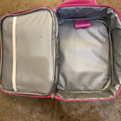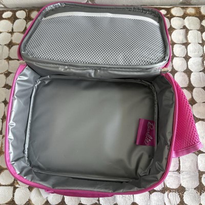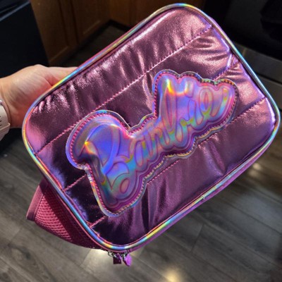 [This review was collected as part of a promotion.] I got the puffer lunch bag and the Barbie holographic, puffer material with metallic pink finish. I love the bright color and the lunchbox to make it fun. The sides feel durable for when it gets tossed around at school. On the back it has a name tag in a pocket to make sure that it will not wipe off. The outer side of it has a pocket that seems stretched out, and will not hold anything securely in there. Overall, I like how roomy it is on the inside and it features another mesh pocket for other essentials. My daughter is very excited to use us for school. I received an incentive to write this review.