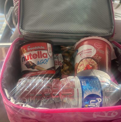 [This review was collected as part of a promotion.] This Barbie lunch box is from target and it is adorable ! It’s all plastic so easy clean up if needed. It is a bright pink color with a waterbottle holder on the side . It fit inside a granola cup, a big water bottle, Nutella sticks and pretzels. Overall perfect for the little one who loves Barbie. It would probably hold a sandwich as well and maybe an extra baggie of goodies . I received an incentive to write this review.