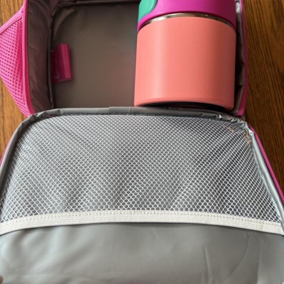 [This review was collected as part of a promotion.] I love the metallic pink color and the puffy material!! The lunchbox has plenty of space for a thermos and other snacks. There is a space for a small drink on the side but it is not large enough for a stainless steel water bottle. The quality was lacking in my opinion. When it arrived the material on the handle was already fraying. My child then put a princess crown inside and when taking it out already ripped the inside lining. I will duct tape it and use it for as long as it will last but I was disappointed by that. Overall the style was very cute but the quality was lacking in my opinion. I received an incentive to write this review.