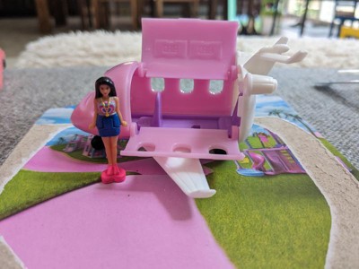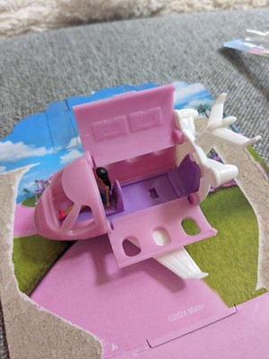 [This review was collected as part of a promotion.] Doll is really small. Perfect for barbie(kelly/Chelsea) toys. Doll is bendable and Great inventment for elder kids. The plane changes colors from dark pink to light pink when hot. The plane opens the top to insert mini doll. The plane is adorable and easily put together.