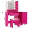 Elevate your beauty routine with this elegant dressing table set. This dressing table comes with a spacious lit mirror featuring adjustable brightness and three color modes, providing perfect lighting for any occasion. The stylish glass tabletop adds a touch of chic and modernity, allowing you to see all your essentials neatly stored below. It has a spacious drawer and a cabinet, keeping everything you need within easy reach. Also comes with a comfortable soft stool, this dressing table is a luxurious addition to any bedroom or dressing area, making it the ultimate gift for beauty enthusiasts.