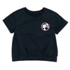 • Rib knit crew neck collar; Awesome screen print design with shiny foil; Elastic waist for comfortable stretch and a better fit; Pull on closure; Elastic crop top waist; Roll sleeves; Iridescent shorts