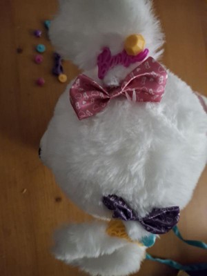 [This review was collected as part of a promotion.] This little pup is so adorable. Would make the perfect gift. She is SO soft. When you tug on the leash she barks and walks a little. My kids loved decorating her hair and collar with the accessories.
