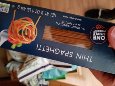 Barilla Thin Spaghetti Pasta this is the only noodles I buy. Comes out great every time and its easy to cook.